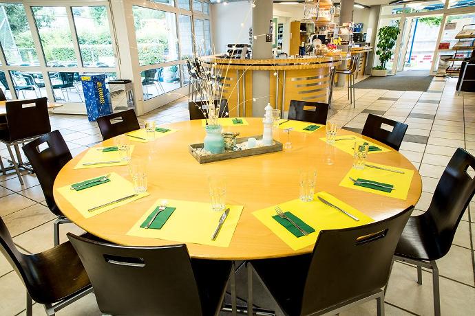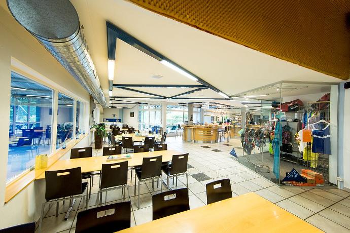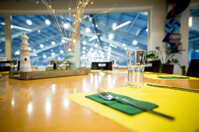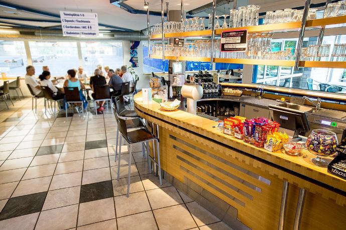 Das grosszügig gestaltete Restaurant mit Sporttreff-Bar lädt nach der sportlichen Betätigung zum Verweilen ein. Auch Nichtsportler sind herzlich willkommen.